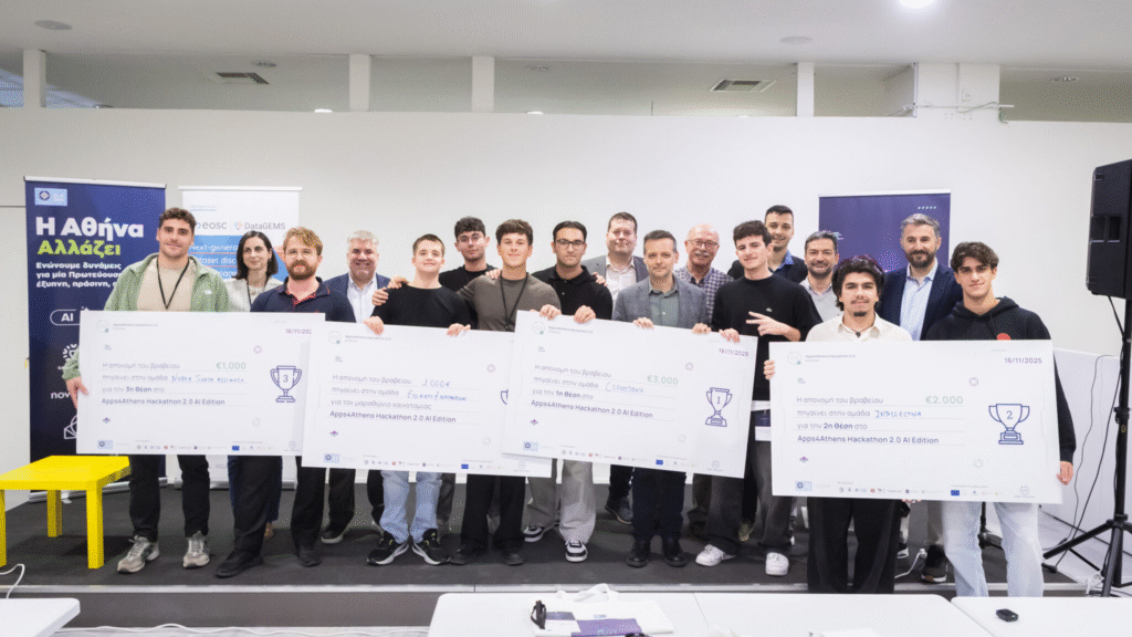 Η Αθήνα έγινε το επίκεντρο της Τεχνητής Νοημοσύνης για 48 ώρες. Μαθητές γυμνασίου και λυκείου, φοιτητές, startups, ερευνητές, και AI enthusiasts συμμετείχαν στον Μαραθώνιο Καινοτομίας Apps4Athens Hackathon 2.0: AI Edition, που διοργάνωσε ο Δήμος Αθηναίων στις 15 και 16 Νοεμβρίου, στο Σεράφειο. Στη δράση που υλοποιήθηκε από τη ΔΑΕΜ Α.Ε., Ανώνυμη Αναπτυξιακή Εταιρεία Μηχανογράφησης και Επιχειρησιακών Μονάδων ΟΤΑ του Δήμου, παρουσιάστηκαν προτάσεις με πραγματικό αποτύπωμα στην καθημερινότητα, επιβεβαιώνοντας τη δυναμική της Αθήνας ως ανερχόμενου κόμβου ψηφιακής καινοτομίας.