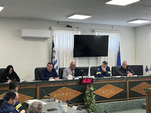 Την Τρίτη 21 Απριλίου 2026 και ώρα 10:00 π.μ., στο Δημαρχείο του Δήμου Πάργας στο Καναλλάκι, πραγματοποιήθηκε σύσκεψη του Συντονιστικού Οργάνου Πολιτικής Προστασίας, με θέμα: «Λήψη προληπτικών μέτρων για την αντιμετώπιση φαινομένων πυρκαγιάς».
