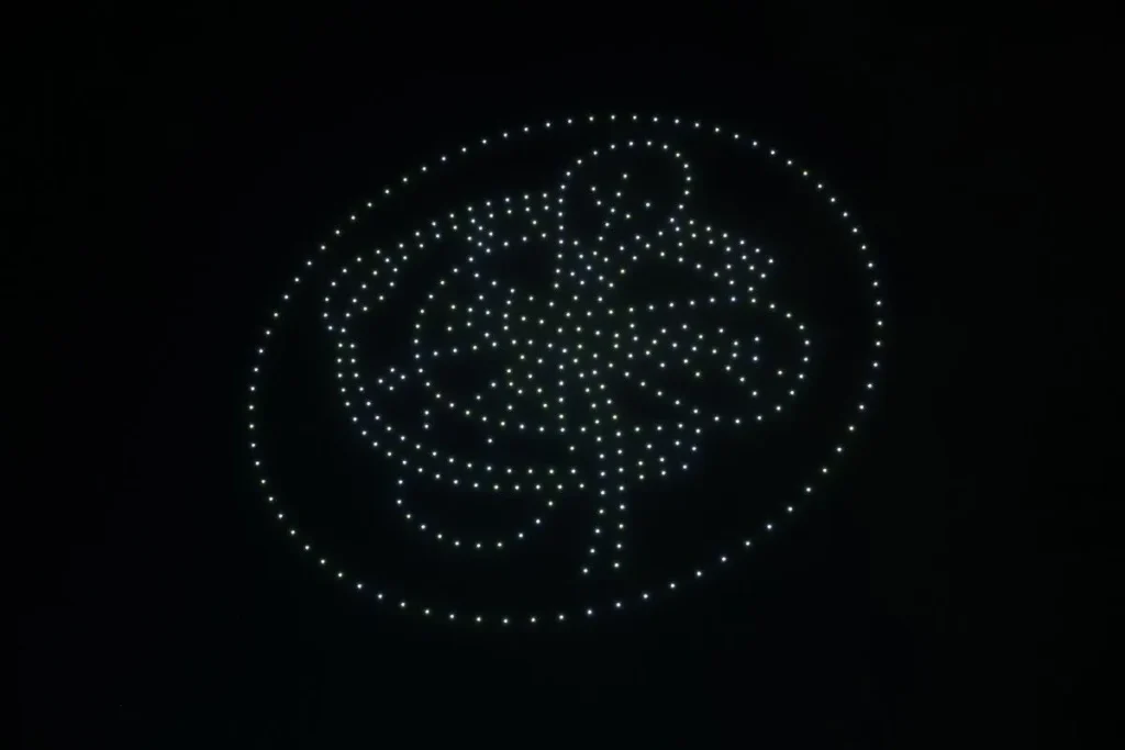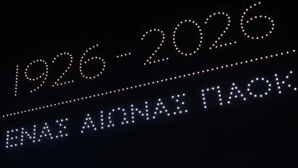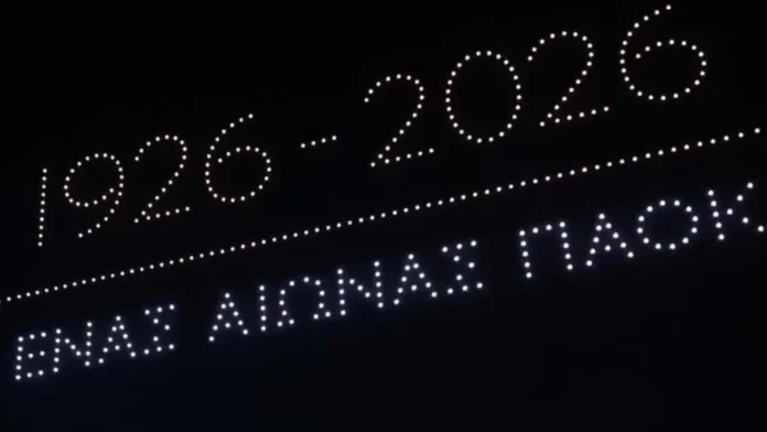 Για να πραγματοποιηθεί αυτό το φαντασμαγορικό θέαμα, χρησιμοποιήθηκαν 400 drones που σχημάτισαν στον ουρανό της Θεσσαλονίκης, τα εμβλήματα του συλλόγου τη φανέλα, το έτος ίδρυσης καθώς κι αυτό που συμπλήρωσε τον έναν αιώνα (2026).